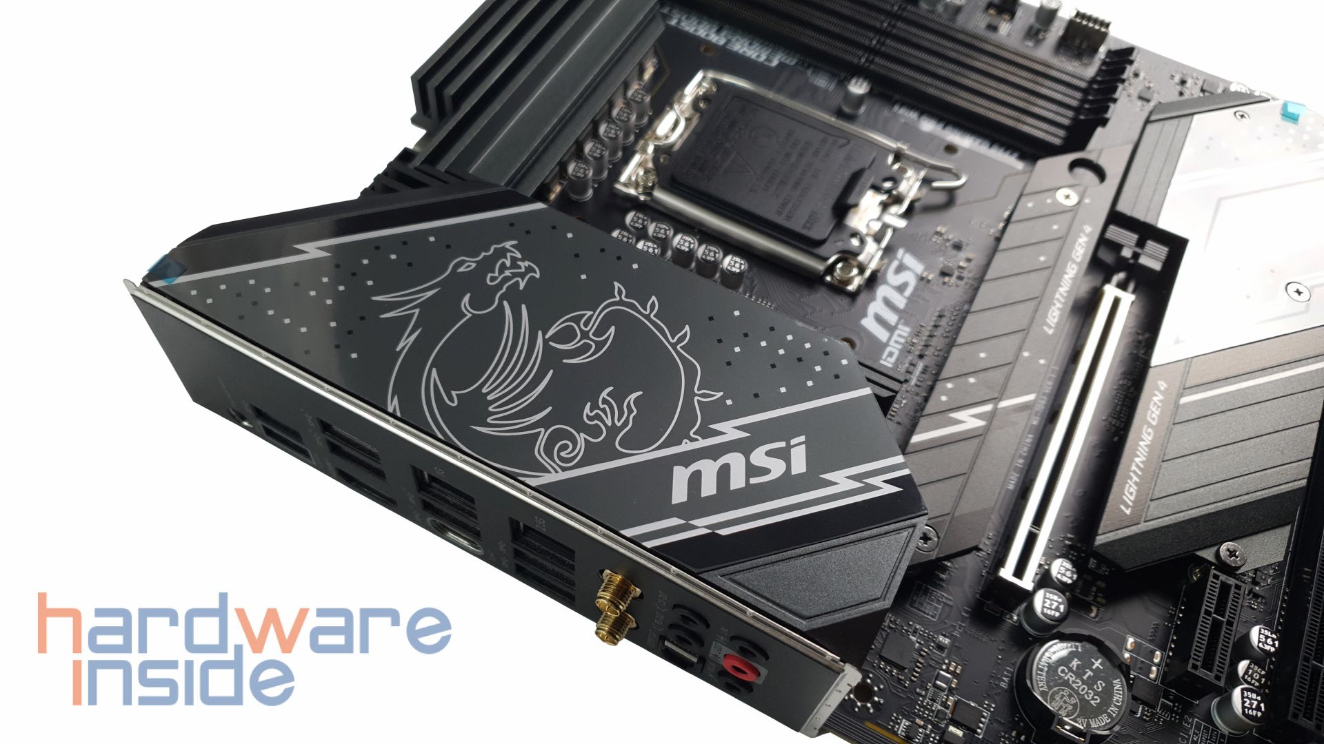 Bei der Konnektivität auf der Seite des IO-Shields besitzt das Mainboard den neuesten Wi-Fi 6E Standard, eine Bluetooth 5.3 Verbindung und 2,5G und 1G Lan. Weiterhin haben wir drei USB 10 Gbit/s Anschlüsse und vier weitere 5 Gbit/s USB. Der PCI-E-Anschluss mit dem Namen Lightning 4 verdoppelt sich im Vergleich zur vorherigen Generation und erreicht bis zu 64 GB pro Sekunde.