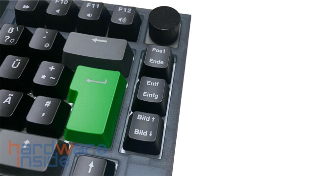 Außerdem kann der Einzeleinsatz bei der Spacebar gegen einen Splitspacebar getauscht werden. Dadurch kann die Ergonomie sowie die Funktionalität nochmals gesteigert werden.