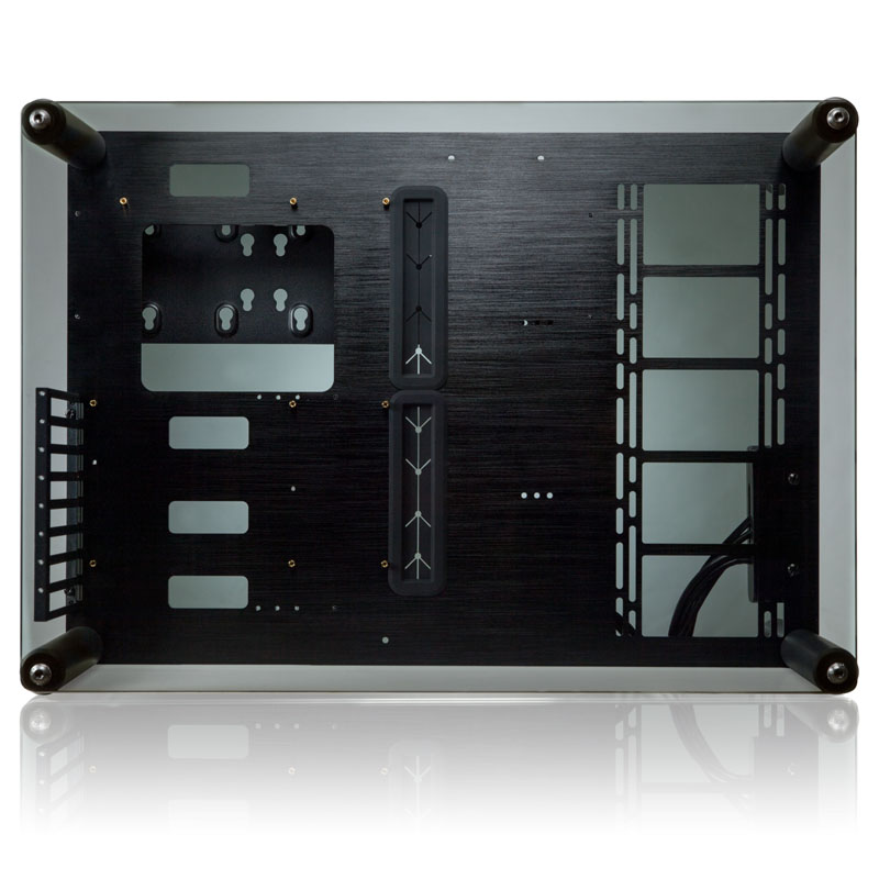 Bei Verwendung eines Wakü-Reservoirs können auf dem Mainboard verbaute Grafikkarten bis zu 31 Zentimeter lang sein, bei Verzicht darauf stehen den GPUs sogar satte 40 Zentimeter an Raum zur Verfügung – ideal für AMD CrossFireX oder NVIDIA SLI Multi-GPU-Konfigurationen. Kühler für den Prozessor können etwa 13 Zentimeter hoch sein, wobei ohne Glas-Seitenteil unbegrenzt Platz vorhanden ist.