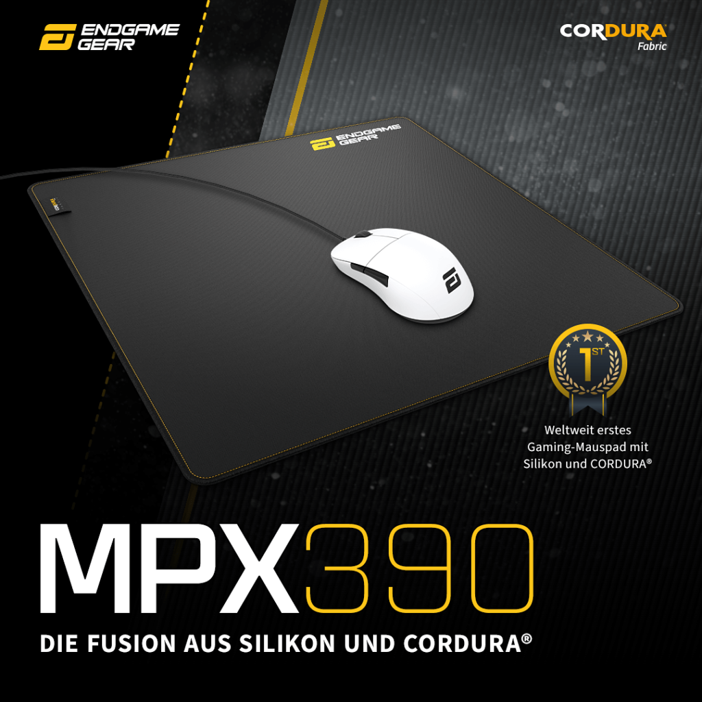 Berlin, 29.09.2020 – Mit dem MPX390 präsentiert der auf eSports-Equipment spezialisierte Hersteller Endgame Gear das weltweit erste Gaming-Mauspad mit CORDURA®-Oberfläche und Silikon-Unterseite. Durch die Kombination beider Materialien vereint das Endgame Gear MPX390 CORDURA® Gaming-Mousepad sowohl die Vorteile von Soft- als auch die von Hard-Pads: Seine schmutz- und wasserabweisende Oberfläche bietet hervorragende Gleiteigenschaften und ermöglicht optischen Sensoren eine präzise Abtastung. Die Silikon-Unterseite sorgt für eine enorme Rutschfestigkeit, aber auch für eine ebene Oberfläche ohne Wellenbildung.