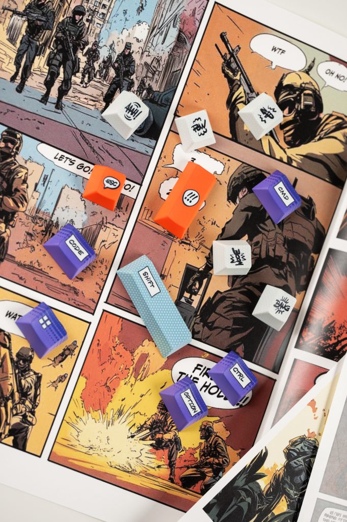 Heute wird jede Tastatur zum Held mit den neuen limitierten GPBT Comic Boom Keycaps von Glorious Gaming. Die neuesten Keycaps des Herstellers sind von der kindischen Liebe für klassische Comics inspiriert und ähneln im Stil alten Comicheften. Starke Akzente wie Wortblasenmotive und ein Punktdruck-Stil geben dem Look richtig PUNCH!