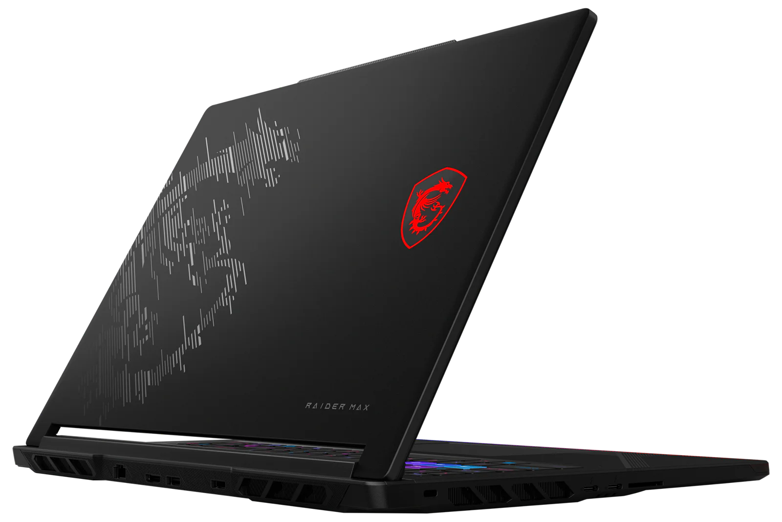 Blickfang im Gaming-Einsatz sind die RGB-Lichteffekte: Neben der Steelserie-Tastatur mit RGB-Einzeltastenbeleuchtung bietet der Raider 16 Max eine neue dünne RGB-Lightbar an der Vorderkante und die Möglichkeit, über MSI Mystic Light auch die Farbe des Drachen-Logos auf dem Cover nach individuellem Gusto zu steuern.