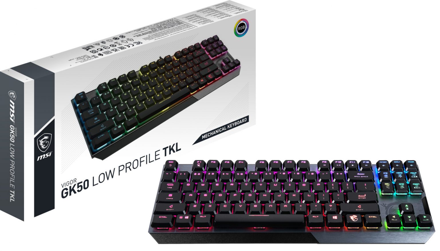 Die erste mechanische 80%-Low-Profile-Tastatur von MSI, die VIGOR GK50 LOW PROFILE TKL, ist eine Weiterentwicklung der preisgekrönten Tastatur VIGOR GK50 LOW PROFILE ohne Ziffernblock. Das Tenkeyless-Layout wurde für Casual-Gamer entwickelt und bietet eine Mischung aus Leistung und Funktionalität in einem kompakten aber eleganten Formfaktor.