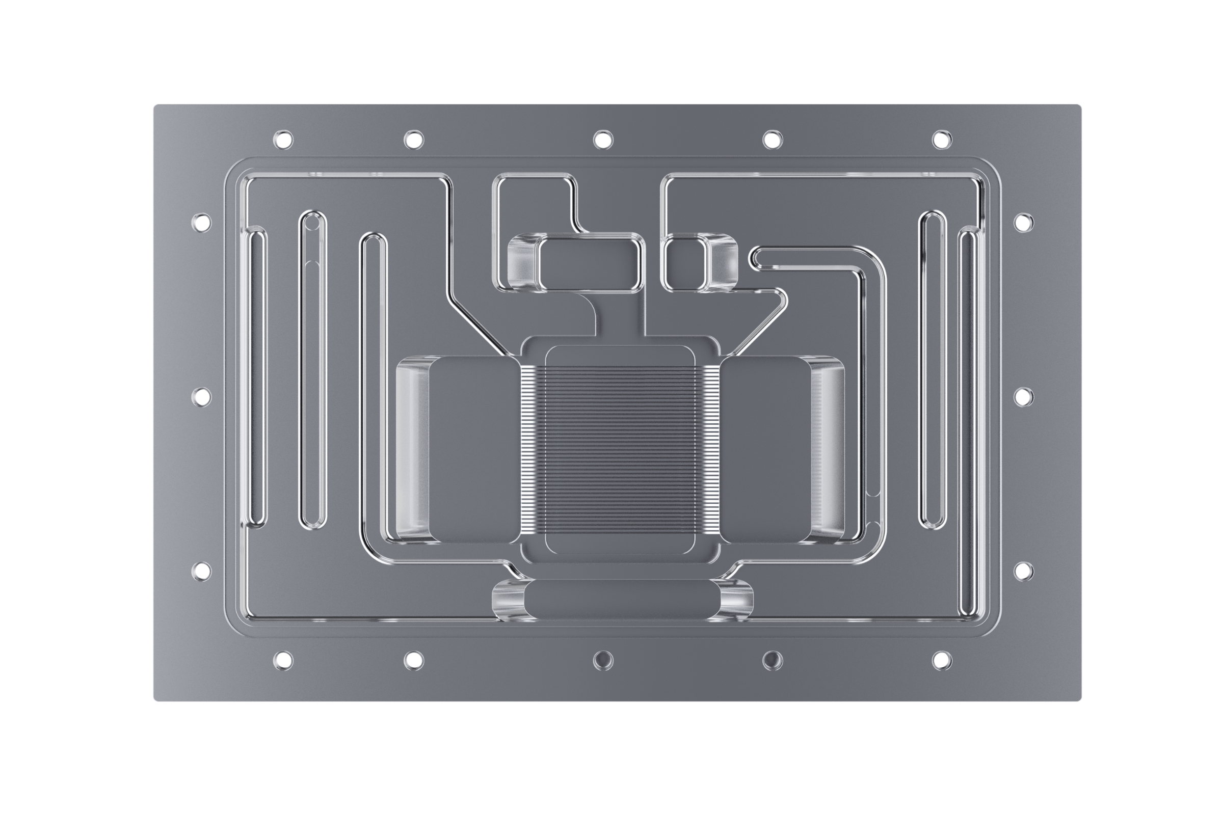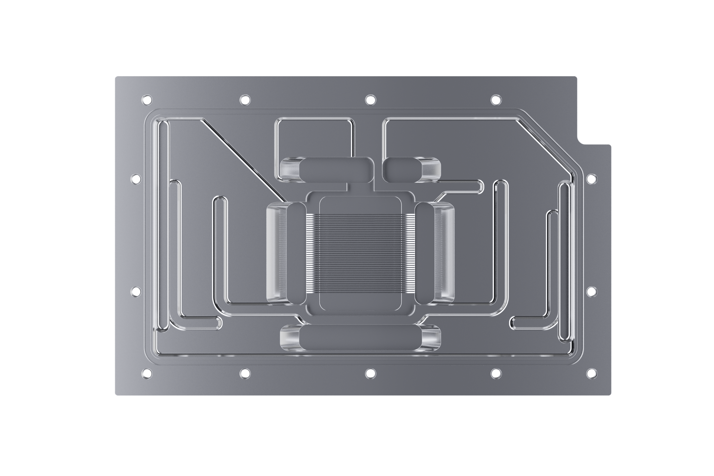 Dank der besonders filigranen Finnenstruktur wurde die Kühlfläche vergrößert und ein sehr guter Wasserdurchfluss ermöglicht. Die Düsenplatte mit überarbeitetem Zufluss verteilt das Wasser zudem perfekt auf den Kühlfinnen. So wird die enorme Abwärme der neuen Grafikkartengeneration mit dem Kühler exzellent abgeleitet. Die vollflächige Verchromung des Kupferbodens bietet nicht nur beständigen Schutz gegen Säuren, Kratzer und Schäden, sondern erreicht eine schöne Homogenität und einen besonderen Glanz.