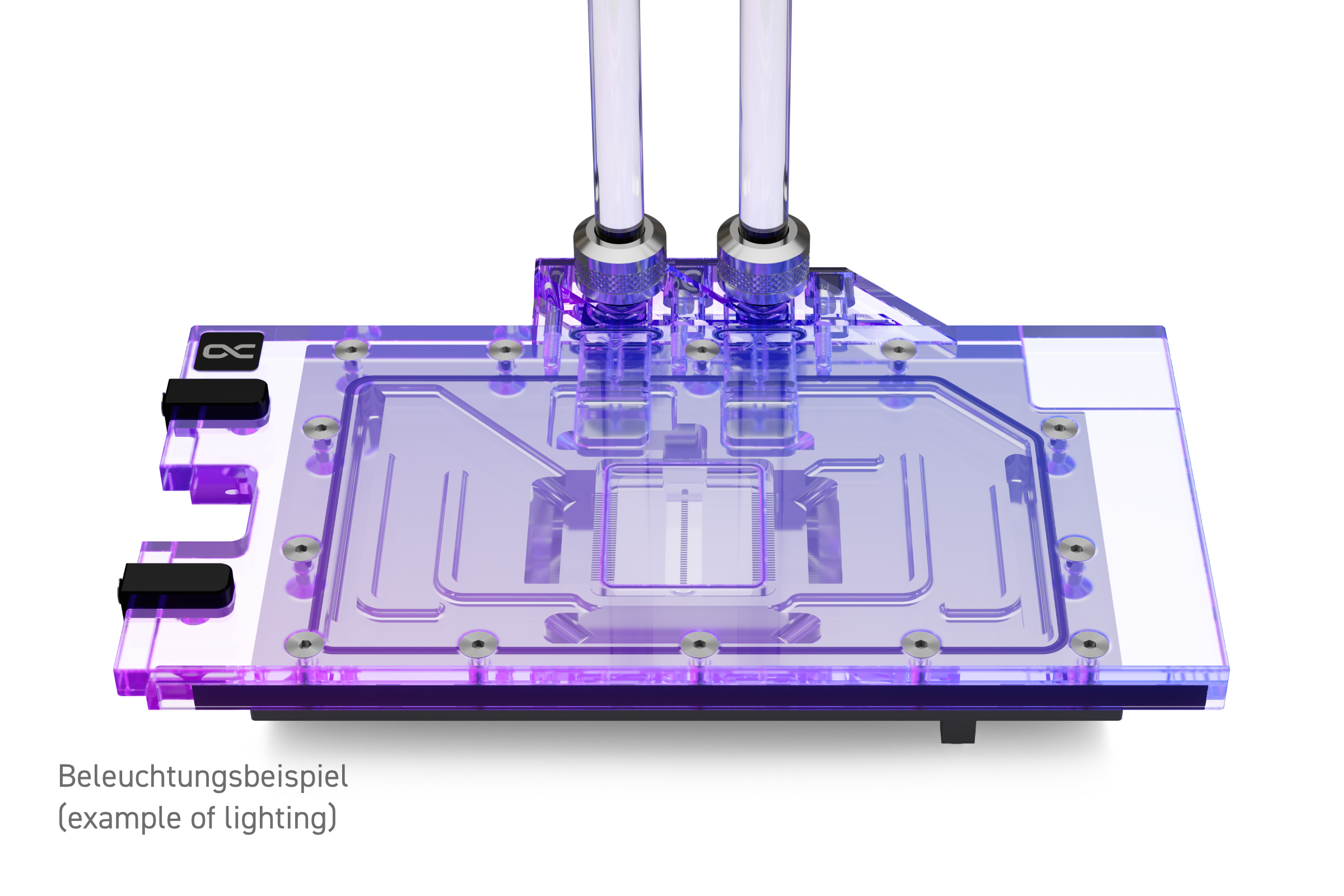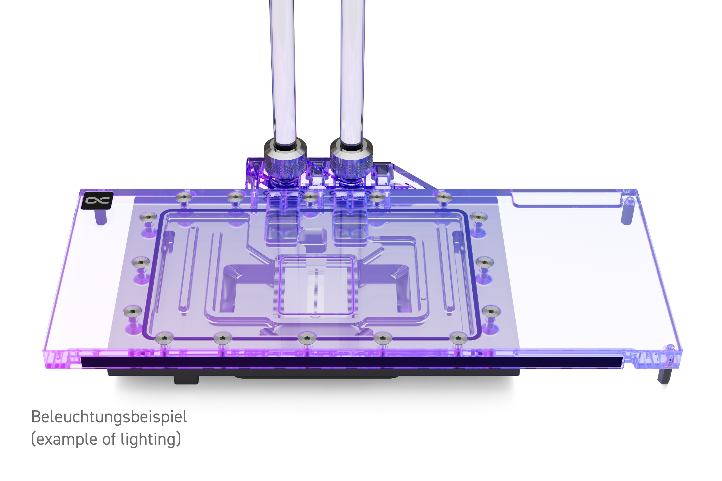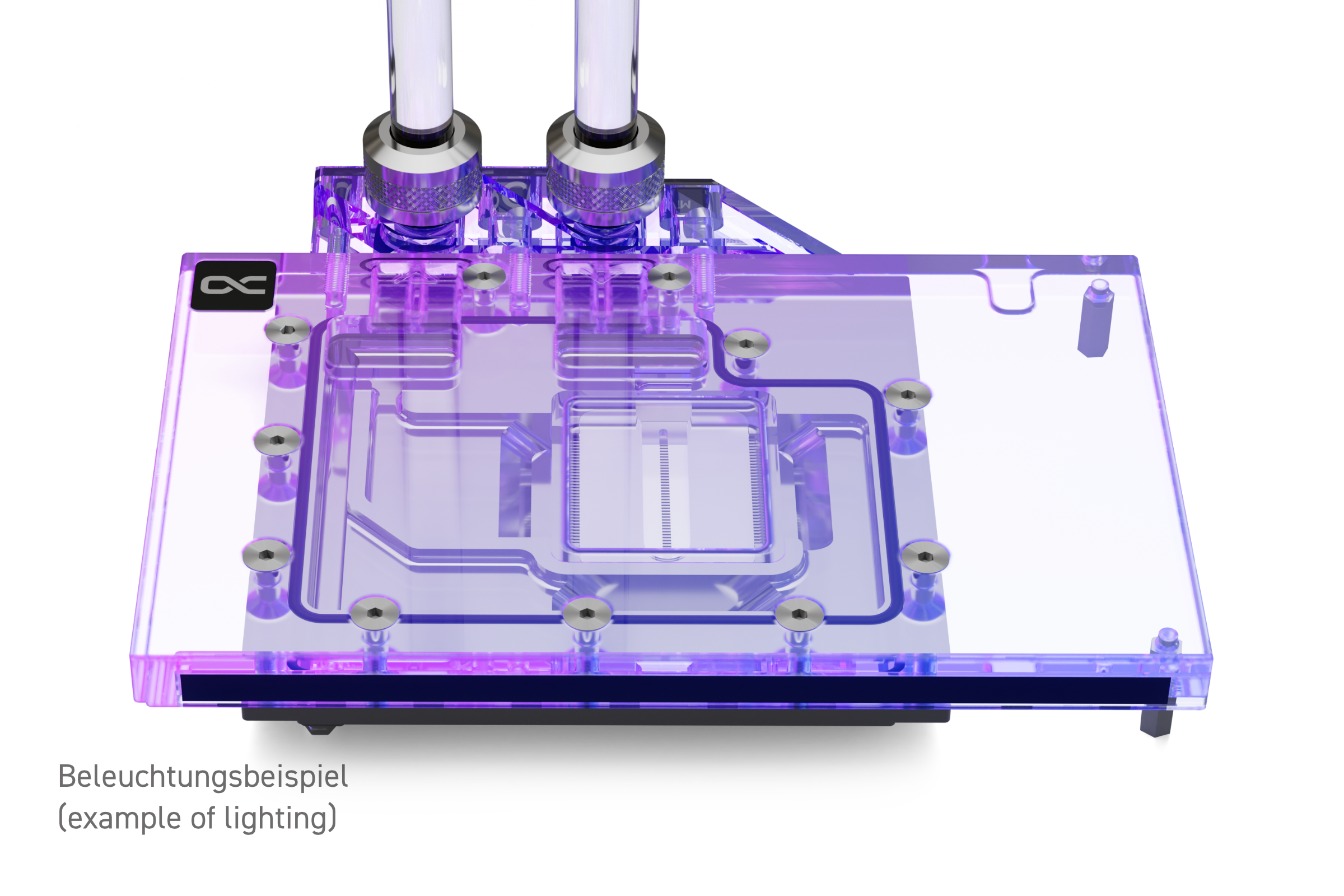 Neben den technischen Verbesserungen hat der Eisblock ein Facelift erhalten: Das Aurora Design ist optisch ruhig und schlicht gehalten, da nur ein O-Ring den gesamten Kühler umläuft. Außerdem sorgt die Konstruktion der Kühlfinnen und der Jetplate für eine klare Optik. Die Beleuchtung mittels digital adressierbaren RGB-LEDs breitet sich dank der Verchromung ausgesprochen gleichmäßig im Kühler aus.