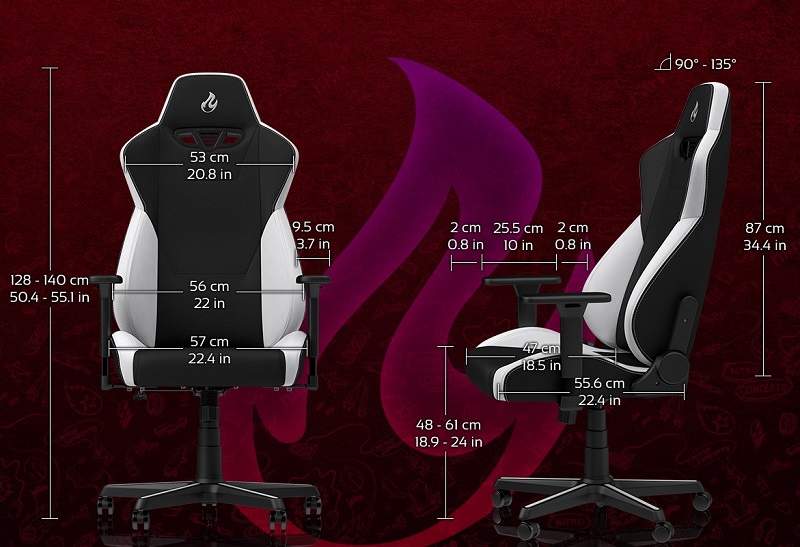 Die ergonomische Konstruktion mit einem strapazierfähigen Stoff überzogen bietet für lange Gamingsessions den richtigen Halt. Die Maximalbelastung wird auf 135 Kilo festgelegt und mit einer Gesamthöhe von 140 cm ist der NITRO CONCEPTS S300 auch für größere Spieler geeignet. Neben Features wie einer Wippfunktion, verstellbaren Armlehnen, zwei Kissen, 50 mm Rollen für Hart und Weichböden besitzt der Gaming-Sessel eine stabile Stahlkonstruktion im Kern.