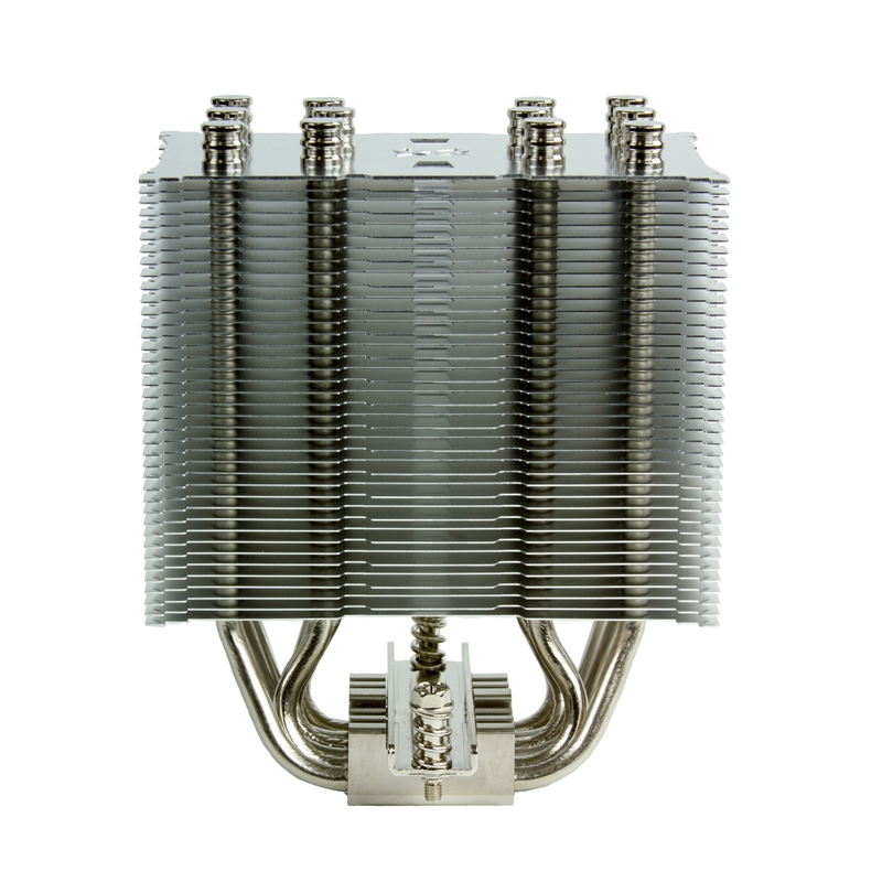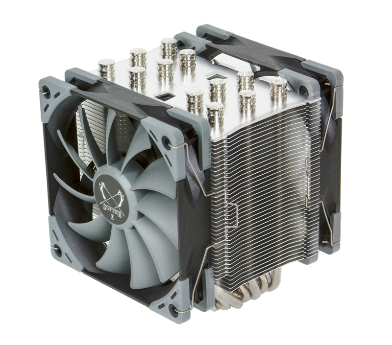 Das verantwortliche Team aus Scythe Ingenieuren machte sich bei der Entwicklung das Feedback der Kunden zu Nutze und wandte dieses gezielt für ein neues Design am Mugen 5 an. Der Kühlkörper des Mugen 5 setzt auf 6 Hochleistungs-Kupferheatpipes und einen Wärmetauscher aus Aluminiumlamellen. Großartige Kompatibilität zu Arbeitsspeichermodulen (RAM) wird durch das neue asymmetrische Design gewährleistet. Zu diesem Zweck wurde die Vollkupferbodenplatte nicht zentriert, sondern leicht versetzt platziert. Zusätzlich wurden einige Kühllamellen des Radiators auf der Rückseite des Mugen 5 gekürzt, sodass auch große Module trotz unterschiedlicher Mainboard-Desings problemlos passen. Dank einer geringen Bauhöhe von nur 154,5 mm passt der Mugen 5 ganz einfach in den Großteil aller sich am Markt befindlichen PC Gehäuse. Um Korrosion zu vermeiden und die Qualität sowie optische Brillanz zu erhöhen, wurden alle Kupferheatpipes und die Kupferbodenplatte in einem finalen Fertigungsprozess vernickelt.