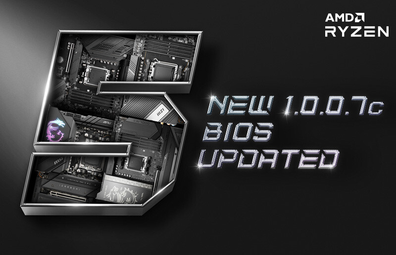 MSI hat heute ein neues AMD AGESA PI 1.0.0.7c BIOS-Update für alle MSI Mainboards der Produktlinien X670E, X670, B650 und A620 veröffentlicht. Die neue BIOS-Version zielt vor allem auf die Unterstützung von DDR5-Speichermodulen und die Behebung von Stabilitätsproblemen ab. Das neueste Update bietet eine signifikante Erhöhung der unterstützten Speicherfrequenz für AMD Ryzen™ CPUs.