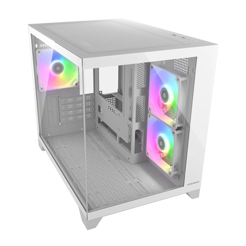 Am 3. September 2025 stellte Compucase Enterprise das COUGAR FV150 MINI RGB vor – ein Mini-Tower mit säulenfreier Bauweise und getrennter Kammerstruktur. Netzteil und Laufwerke sitzen hinter dem Mainboard, was für bessere Kühlung und ein sauberes Innenleben sorgt.