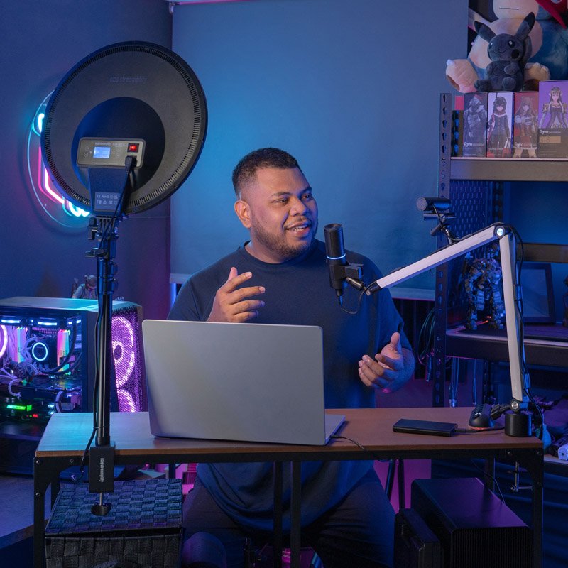 Streamplify haben es sich zur Mission gemacht, den Einstieg ins Livestreaming zu erleichtern. Mit dem GLOW LIGHT 14 könnt ihr euch jederzeit bestens in Szene setzen. Das HUB DECK 5 ermöglicht volle Kontrolle über alle eure USB Geräte und regelt das Kabelmanagement. Der MOUNT ARM, mit extra Halterung für Zubehör, ist eine elegante Lösung um beispielsweise Mikro und Kamera oder Handy gleichzeitig zu befestigen. Die ACOUSTIC PANEL sorgen für allzeit beste Verständlichkeit und guten Sound.