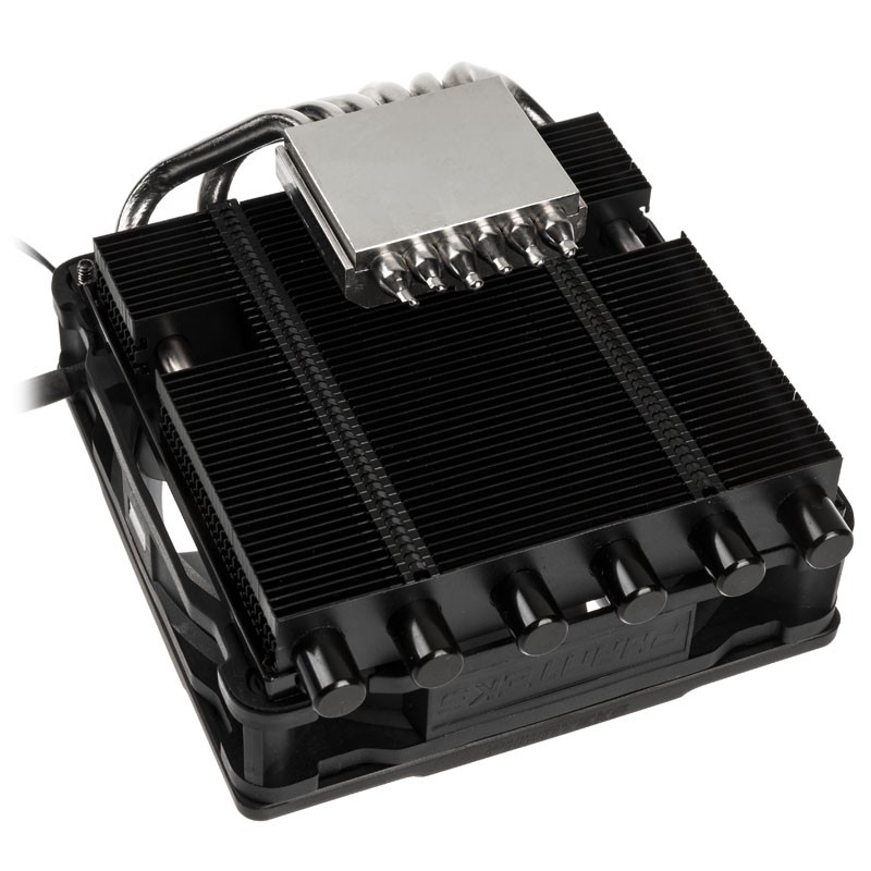 Der PHANTEKS PH-TC12LS führt die Abwärme von AMD- oder Intel-CPUs über eine Kupfer-Bodenplatte mit sechs leistungsfähigen, vernickelten Kupfer-Heatpipes mit je 6 mm Durchmesser an den horizontal verlaufenden Kühlblock mit schwarzen Aluminium-Lamellen ab. Dieser ist mit der Nanobeschichtung P.A.T.S. (Physical Anti-Oxidant Thermal Shield) beschichtet, wodurch die Kühlperformance deutlich gesteigert ist. Der hervorragende PWM-Lüfter PH-F120MP, der bei lediglich 25 dB(A) bereits 90 m³/h Airflow erzeugen kann, kühlt den Kühlkörper wieder herunter.
