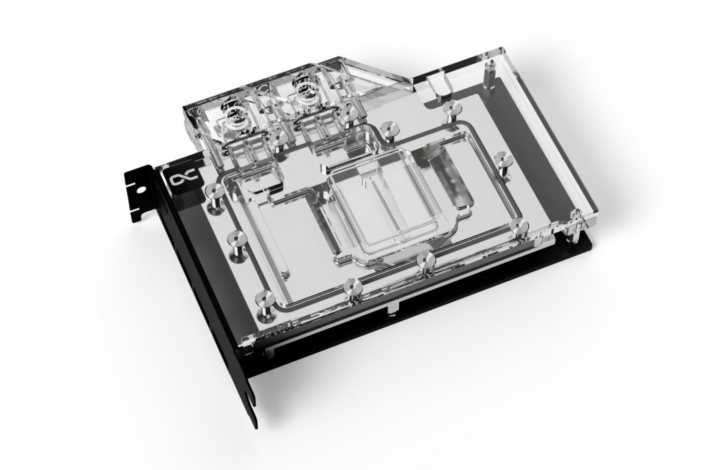 Um die enorme Abwärme dieser Grafikkartengeneration bestmöglich abzuführen, wurden am Wasserkühler zahlreiche Optimierungen im Vergleich zu den Kühlermodellen der 30XX Kartengeneration durchgeführt. Die Finnenstruktur wurde angepasst und ermöglicht einen optimalen Wasserdurchfluss bei gleichzeitiger Vergrößerung der Kühlfläche. Die modifizierte Düsenplatte mit verbesserter Zufluss-Engine sorgt für eine bestmögliche Verteilung des Wassers auf den Kühlfinnen. Der vollständig verchromte Kupferboden ist resistent gegen Säuren, Kratzer und Schäden. Zusätzlich bietet die Verchromung Homogenität und Glanz, welche so durch eine Vernicklung nicht erreicht werden können.