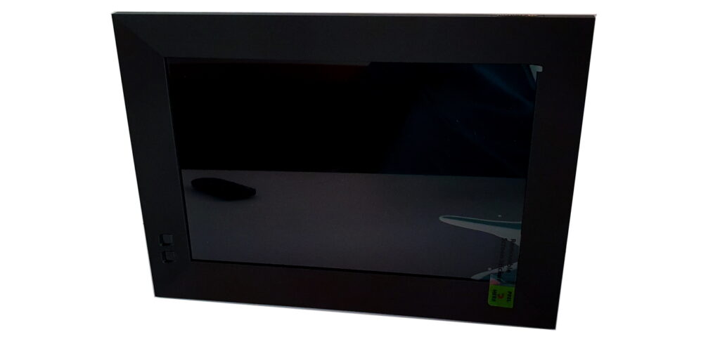 Das Design des nixplay Smart Photo Frame 10.1 ist sehr einfach gehalten, so kann sich der Nutzer auf den angezeigten Inhalt konzentrieren, der auf dem 10.1 Zoll großen Display angezeigt wird. Das Display spiegelt etwas und verfügt über eine Auflösung von 1280 x 800 Pixeln. Links unten finden wir einen Näherungssensor und den Infrarotempfänger.