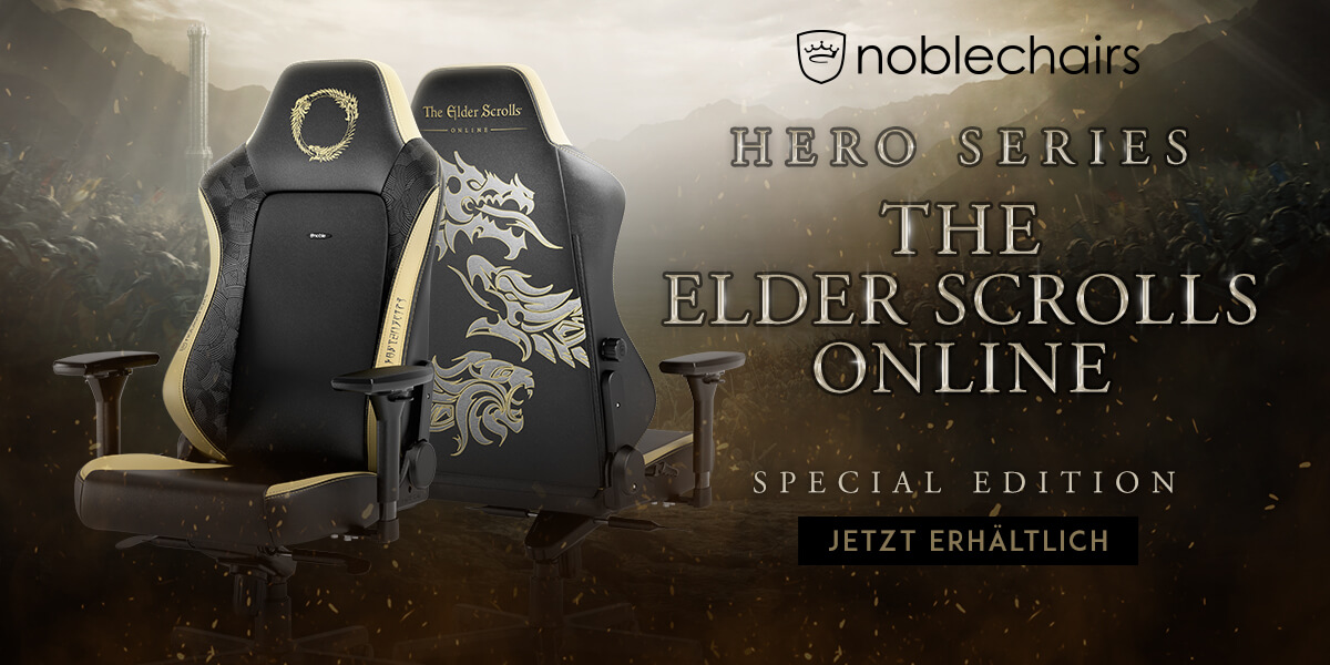 Berlin, 26.05.2021 – Nimm Platz und betritt die Welt von Tamriel wie nie zuvor! Bethesda und noblechairs haben gemeinsam den HERO Gaming Chair – The Elder Scrolls Online Special Edition erschaffen. Mit ihm erlebst du die Welt von The Elder Scrolls Online auf höchstem Niveau in Bezug auf Komfort, Stil und Exklusivität. Egal, ob du als Zauberer, Drachenritter, Nachtklinge oder eine der verschiedenen anderen Klassen durch die Welt wanderst, er hält dir den Rücken frei! Jetzt bei Caseking bestellen!