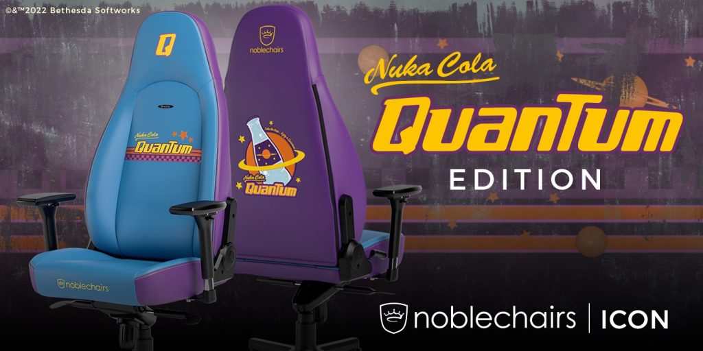 Berlin, 11.10.2022 – Gib dir eine Nuka Cola Quantum! noblechairs haben eine weitere spektakuläre Sonderedition angelehnt an das Fallout-Universum geschaffen. Die ICON Nuka Cola Quantum Edition erstrahlt im unverkennbaren Quantum-Design – die Flasche im Logo sogar wörtlich, denn sie leuchtet im Dunkeln. Das einzigartige Farbschema, die authentischen Details und Referenzen, in Kombination mit noblechairs typisch exzellenter Verarbeitung und bestem Komfort, machen die Quantum Edition zum idealen Begleiter durchs Ödland. Eine Sitzerfahrung, die fast so süchtig macht wie Nuka Cola Quantum!