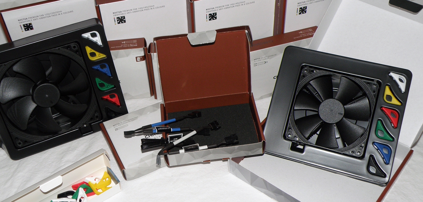 Seit der Gründung im Jahre 2005, ist Noctua ein nicht mehr wegzudenkender Bestandteil der PC-Branche im Enthusiasten-Bereich. Jeder, der schon einmal länger mit Computern zu tun hatte, kennt diese Marke und verbindet diese mit ihrer hohe Qualität und Zuverlässigkeit. Weg vom ewigen Braun/Beige möchten wir euch heute das neue Chromax-Zubehör und die Chromax-A14 und F12 Lüfter von Noctua vorstellen. Das Zubehör besticht durch schicke Farben und verbindet sich hervorragend mit den schwarzen Chromax-Lüftern, die neue farbige Eindrücke hinterlassen. Doch schaut euch unseren Test an und seht euch die Prachtstücke selber an.