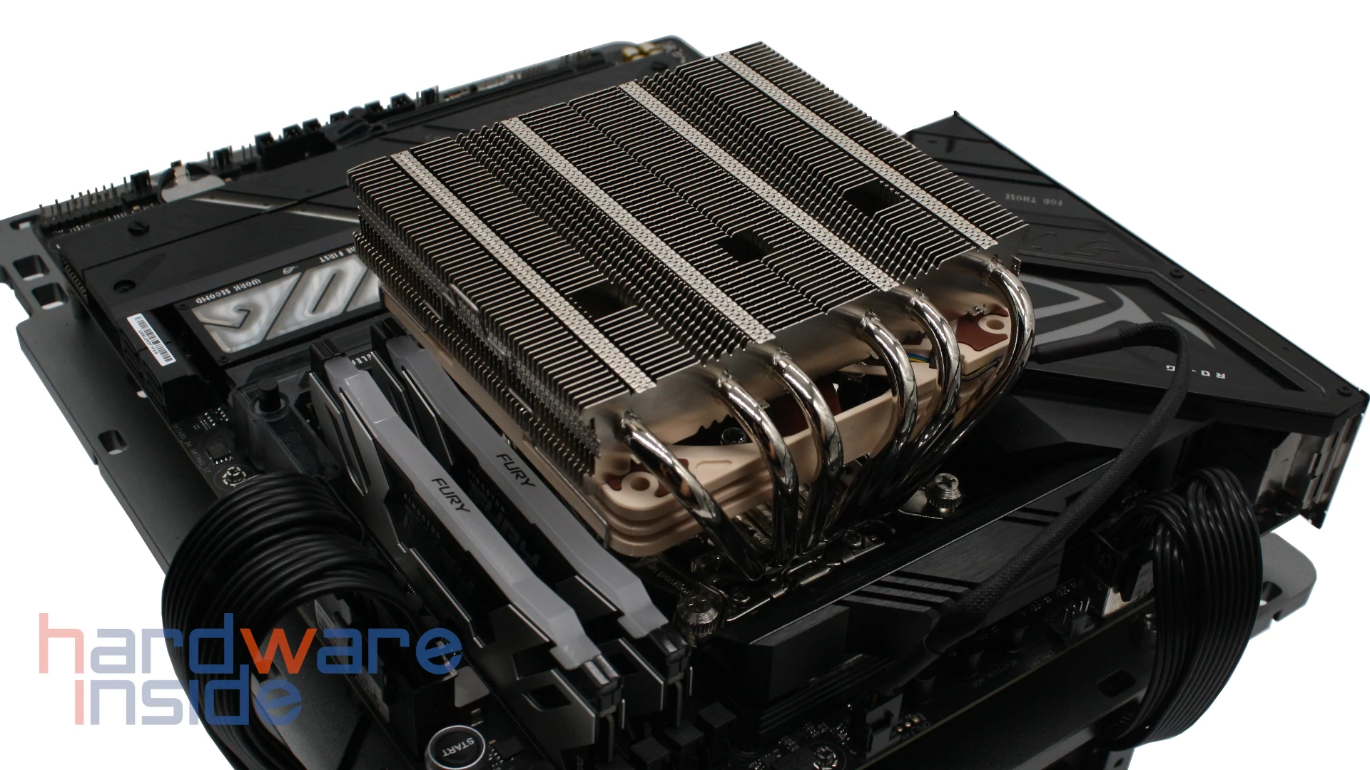 Nach der Montage stellt sich heraus, dass der Lüfter des Kühlkörpers mit größeren RAM-Modulen im ersten Steckplatz kollidieren würde. Um dies zu vermeiden, kann der Lüfter auch auf der anderen Seite des Kühlkörpers montiert werden. In unserem Fall kann der Lüfter an der Unterseite montiert bleiben, da die RAM-Module den ersten Steckplatz nicht nutzen.