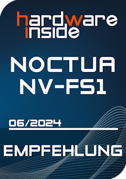 Mit dem Noctua NV-FS1 bringt der Hersteller eine interessante Kühlungsmöglichkeit des Anwenders. Dabei lässt die Konstruktion es auch zu, dass andere Lüfter montiert werden können. Zumindest solange diese nicht das Netzteil überfordern. Außerdem bietet die Halterung nicht nur die Möglichkeit 120, sondern auch 140 mm Lüfter zu montieren. Allerdings funktioniert der NV-AA1-12 Luftstromverstärker nicht mit Lüftern, die größer als 120 mm sind. Insgesamt funktioniert diese Konstruktion sehr gut und erfüllt ihren Zweck. Dabei ist das Ganze im Stromverbrauch sparsam, daher ist das Netzteil etwas überdimensioniert – hier hat man ans Worst-Case-Szenario gedacht –, falls jemand auf die Idee kommt, einen Hochleistungslüfter zu verbauen. Wie zum Beispiel ein Enermax D.F. Storm, der auf der höchsten Stufe bis zu 13,2 Watt ziehen kann. Leider hat das Ganze aber auch seinen Preis, denn im Preisvergleich ist der Noctua NV-FS1 für 99,90 € gelistet. Dies ist unserer Meinung nach der einzige negative Aspekt – daher vergeben wir unsere Empfehlung.