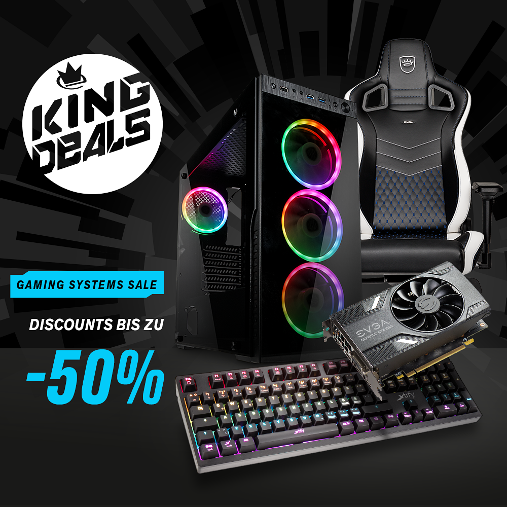 Besonders interessant für Schnäppchenjäger werden neben den zahlreichen Komponenten auch einige Gaming-Rechner sein. Die King Deal Gaming-Systeme wurden von Caseking auf Messen oder Events wie der gamescom 2018 bereits genutzt. Es handelt sich somit um vollkommen funktionsfähige Ausstellungsstücke, die nach den Events vom King Mod-Team ausgiebig getestet und geprüft wurden, um einen makellosen Zustand zu garantieren. Dadurch, dass sie nicht mehr vollkommen neu sind und wie üblich nach Kundenwunsch montiert wurden, können sie zu einem unschlagbar günstigen King-Deal-Preis angeboten werden.