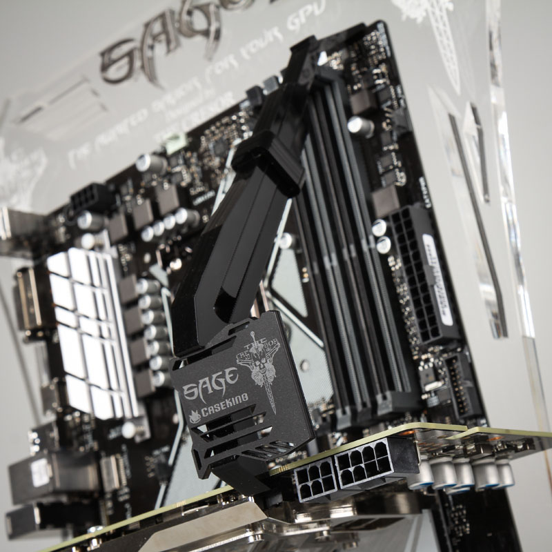 Der SAGE ist aus einem hochwertigen Kunststoff gefertigt. Die Stärke des Materials ist für die größten handelsüblichen Grafikkarten ausgelegt. Dank seiner Form integriert sich die VGA-