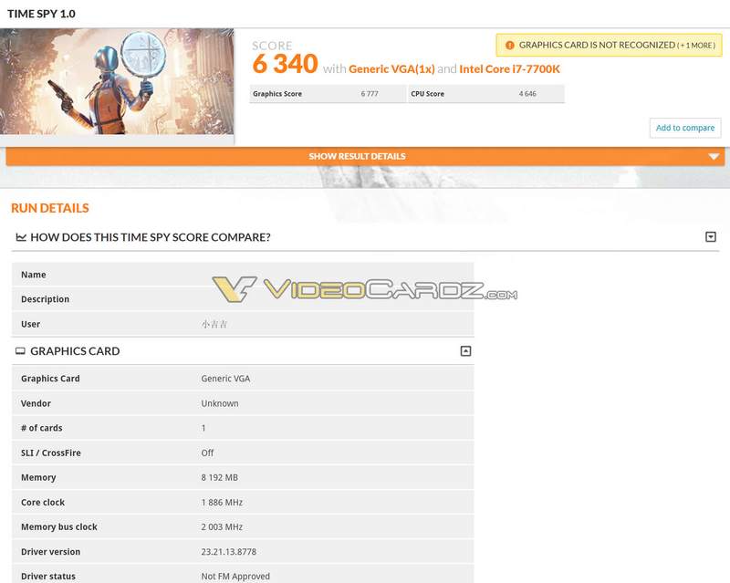 Über VideoCardz.com taucht ein neuer Leak auf, aber diesmal mit einem vertrauten 3DMark Benchmark. Vor einigen Tagen sind Benchmarks der neuen Karte in der „Ashes of the Singularity“-Datenbank mit einem GPU-Score von 6200 aufgetaucht. Die neuesten Ergebnisse zeigen nun ein viel klareres Bild, da sie nicht nur die Firestrike-Ergebnisse, sondern auch TimeSpy und 3DMark 11 enthalten. Bevor wir uns die Benchmark-Ergebnisse ansehen, ist es interessant festzustellen, dass die Taktrate der Karte auf 1886 MHz eingestellt ist.