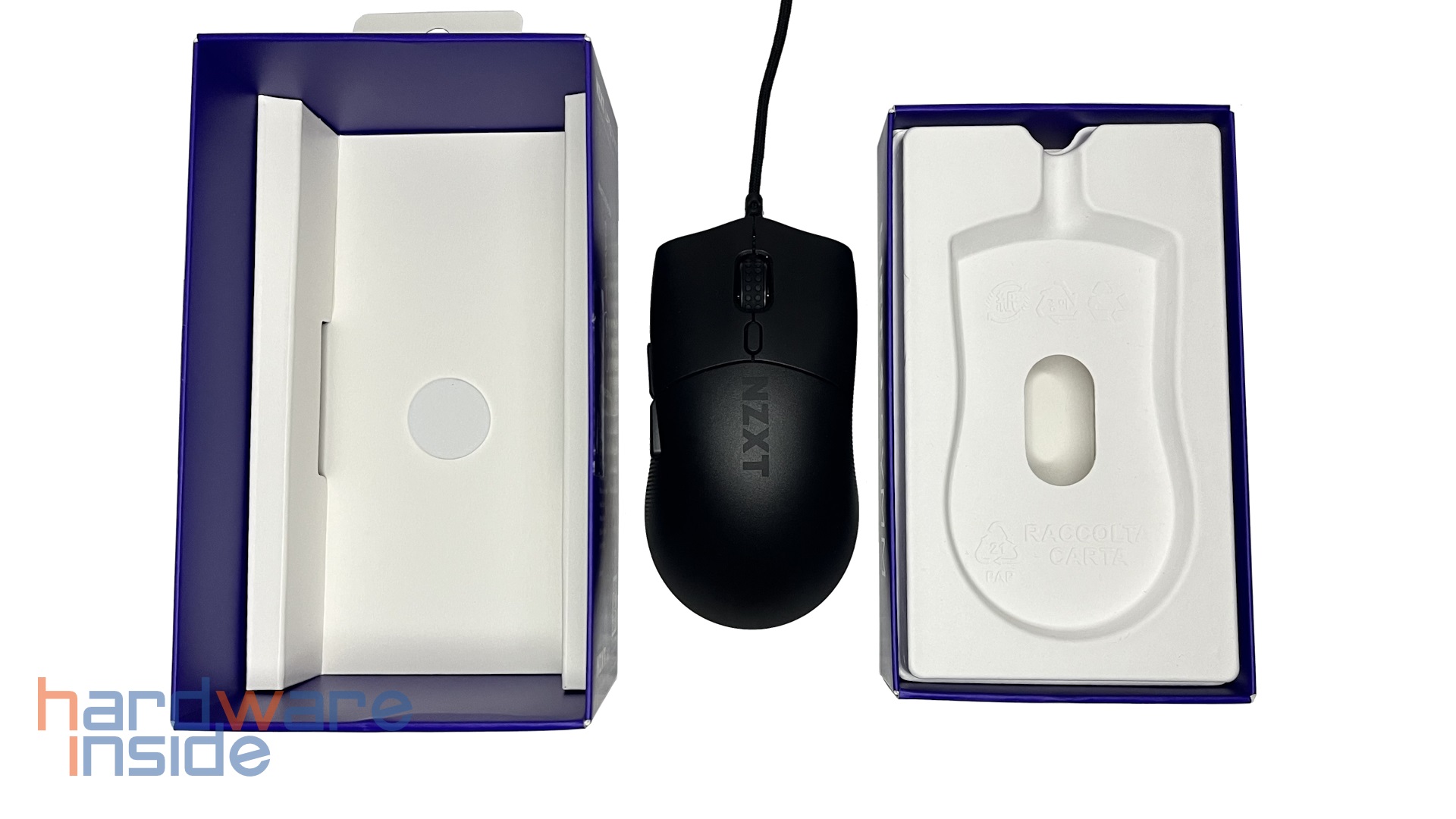 Der Lieferumfang der NZXT LIFT 2 SYMM ist sehr übersichtlich, denn außer der Maus befindet sich nichts weiter in der Verpackung. Auch bei der Maus ist keine Bedienungsanleitung dabei, allerdings finden sich sowohl auf den Verpackungen jeweils QR-Codes, welche zu den jeweiligen Bedienungsanleitungen führen.