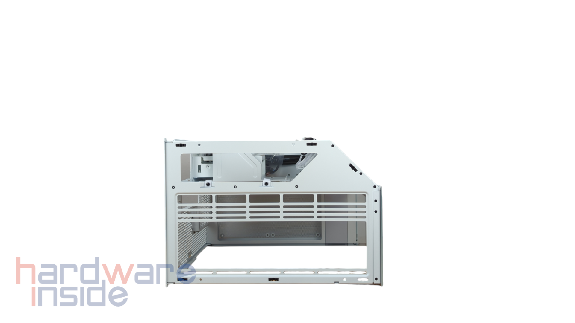 Das Innere des H6 Flow macht einen sehr cleanen und großen Eindruck. In der abgewinkelten Ecke sitzen die drei ARGB-Lüfter. An dieser Stelle kann jedoch kein Radiator platziert werden. Aber so ist die Beleuchtung der ARGB-Lüfter gut durch das Glasseitenteil gut zu sehen. Links von den Lüftern sind die Kabelschlitze versteckt. Jedoch fallen diese recht schmal aus. Unten können die beiden 140 mm Lüfter förmlich in den Boden gelegt werden, sowas haben wir so noch nicht gesehen. Das hat aber den Vorteil, dass die Lüfter nicht mit dem Mainboard oder Erweiterungskarten kollidieren. Da das Netzteil in der anderen Kammer untergebracht wird, gibt es hier viel Platz hinter dem Mainboardtray, sodass ein modularer Laufwerkskäfig und das Kabelmanagement ausreichend Platz haben.