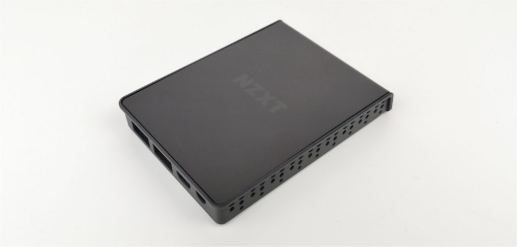 Schauen wir uns kurz den HUE 2 Ambient RGB-LED-Controller etwas genauer an. Die Oberseite besteht aus Metall und ist mit dem NZXT-Logo versehen. Der untere Teil besteht aus Kunststoff, hier sitzen die Anschlüsse des Controllers, zwei 4-Pin-RGB-Anschlüsse, ein Micro-USB-Anschluss sowie ein Stromanschluss.