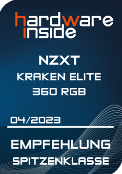 Mit der KRAKEN ELITE 360 RGB ist NZXT wieder einmal ein exorbitanter Volltreffer im Bereich der All-In-One Wasserkühlungen gelungen. Das hervorragende Design und die hochwertige Verarbeitung in Verbindung mit dem individualisierbaren 2,36“ LCD-Display setzen dem Ganzen die Krone auf. Mit der selbsterklärenden und kinderleichten Bedienung der CAM-Software lassen sich selbst erstellte GIFs einfach implementieren, was dem User die individuelle Gestaltung überlässt und in die Karten spielt. Die von NZXT verbaute Asetk Pumpe der 7. Generation hinterließ einen sehr guten Eindruck und kann auch durch die niedrige Drehzahl punkten und bietet gleichzeitig noch einige Leistungsreserven nach oben. Abgerundet wird das Ganze durch die F120 RGB Lüfter. Leistung, Performance und Farbgebung stimmen auf ganzer Linie. Als Sahnehäubchen gewährt NZXT eine Garantiezeit von 6 Jahren. Kommen wir nun zum Preis. Dieser liegt laut Hersteller bei 309,90 Euro. Aus unserer Sicht hoch angesetzt, aber gerechtfertigt. Wer Wert auf Leistung legt und gleichzeitig ein LCD-Display sucht, dessen Design keine Wünsche mehr offen lässt, der ist auch bereit diesen Preis zu bezahlen. Vor allem wegen der Leistung sprechen wir unsere Empfehlung für einen All-In-One-Wasserkühler der Spitzenklasse aus.