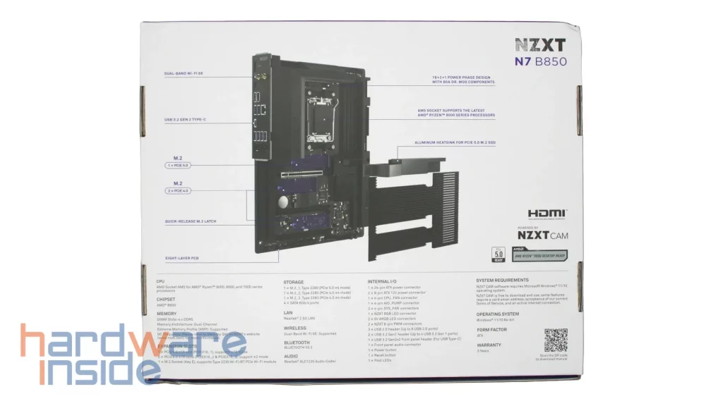Wie die Produktbezeichnung bereits erkennen lässt, handelt es sich beim NZXT N7 B850 um ein Mainboard für AMD-Prozessoren mit AM5-Sockel, das von einem AMD-B850-Chipsatz unterstützt wird. Der B850-Chipsatz ist ein neuer Chipsatz der Mittelklasse, der zunehmend den B650-Chipsatz als Standardoption ablöst. Im Gegensatz zum B650-Chipsatz kann der B850-Chipsatz nicht nur einen NVMe-Steckplatz, sondern auch einen x16-PCIe-Steckplatz mit PCIe-Version 5.0 anbinden. Übertaktung von RAM und CPU werden unterstützt. Im Vergleich zu höherklassigen Chipsätzen bietet der B850 vor allem eine geringere Datenanbindung, was sich in begrenzten PCIe-/M.2-Steckplätzen und USB4-Anschlüssen zeigt. Er ist also eine solide Option für Systeme der Mittelklasse.