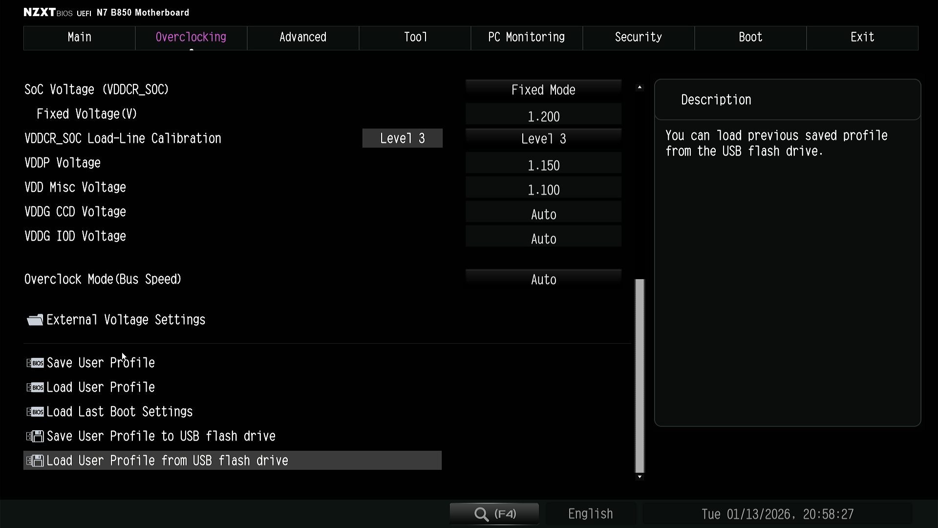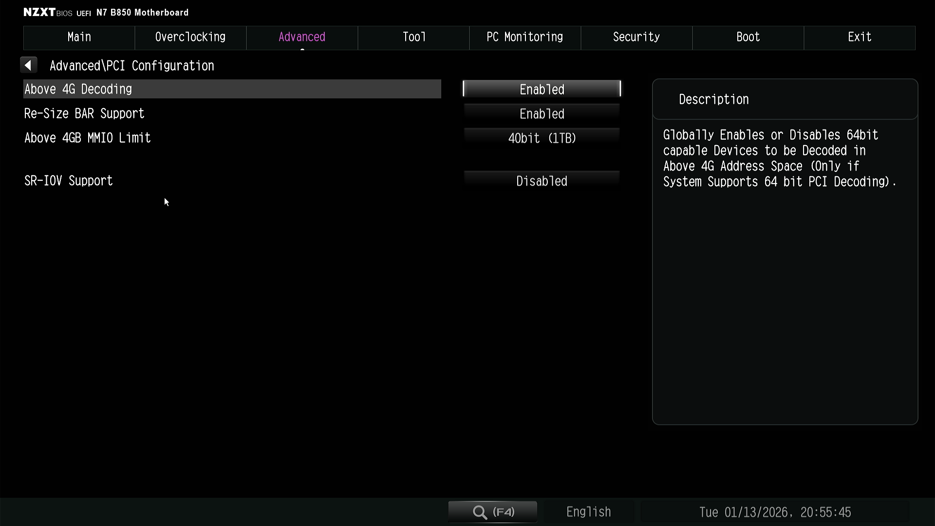 Das UEFI des N7 B850 ist insgesamt ordentlich und doch tiefgehend. Auf der Startseite werden die aktuelle BIOS-Version, der verbaute Prozessor und der Arbeitsspeicher angezeigt. Im nächsten Reiter „Overclocking” geht es dann richtig zur Sache. Die Einstellungen lassen sich entweder grob durch vorgegebene Presets oder sehr feinteilig vornehmen. In diesem Reiter steht vor allem die Feineinstellung des Arbeitsspeichers im Vordergrund. Die Feineinstellungen des Prozessors finden wir in den Gruppen des nächsten Reiters mit dem Titel „Advanced“. Dank der Untergruppen bleibt die Übersicht stets gegeben, dennoch finden wir alle wichtigen Einstellungen.