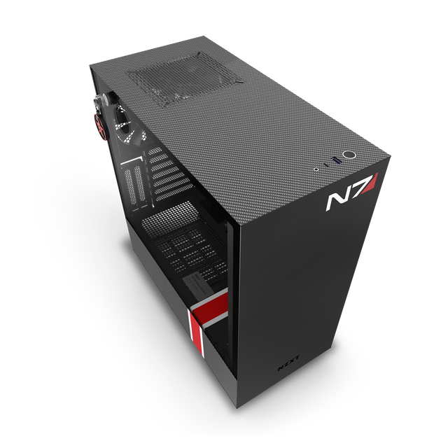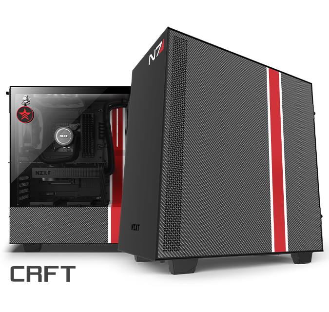 Das NZXT CRFT 07 besteht auf der Grundlage des preisgekrönten H510i Gehäuses von NZXT und lässt sich von der Panzerung des N7 inspirieren. Die streng limitierte Auflage von nur 500 Gehäusen wurde speziell für die Mass Effect Community entwickelt. Die Karbonfaser-Gestaltung sowie der rot-weiße Streifen imitieren die kultige N7-Rüstung aus dem Spiel. Der im Lieferumfang befndliche Anhänger kann von beiden Seiten am Gehäuse befestigt werden, um entweder das Paragon- oder das Renegade-Symbol zur Schau zu stellen, damit Fans ihr wahres Gesicht zeigen können.