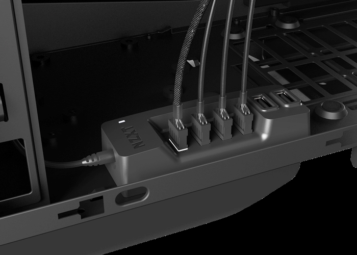 Mit seinen fünf USB-2.0-Anschlüssen liefert der Internal USB Hub die Möglichkeit, die neuesten Flüssigkeitskühlungen, Lüftersteuerungen und Beleuchtungselemente anzuschließen. Die drei internen Anschlüsse bietet somit Platz für zahlreiche Produkte, die von NZXTs hauseigener Steuer- und Systemüberwachungssoftware CAM unterstützt werden. Dies schließt die Wasserkühlungen der Kraken-Reihe, die Lüftersteuerung GRID+ und die Beleuchtungssteuerung HUE+ ein. Zudem bietet der USB-Hub zwei externe USB-2.0-Anschlüsse für Dongles kabelloser Peripherie und Wi-Fi-Sticks. Dadurch werden äußere Gehäuseanschlüsse frei, die dann anderweitig verwendet werden können.