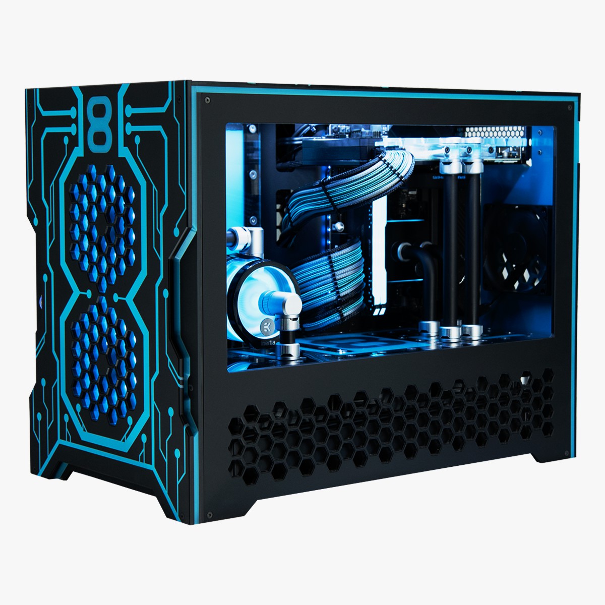 – Extrem modifiziertes Gehäuse von Parvum Systems mit integriertem Reservoir und 8Pack-Logo