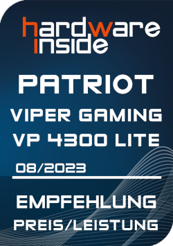 Mit der Viper Gaming VP4300 Lite liefert Patriot Memory eine solide M.2 PCIe Gen 4 x4 SSD. Diese ist für einen Preis von derzeit 91,88 Euro (für die getestete 2 TB – Version) zu gleich eine der günstigsten M.2 PCIe Gen 4 x4 SSDs am Markt. Dabei kann die Viper Gaming VP4300 Lite trotz fehlenden DRAM mit guten Lese- und Schreibgeschwindigkeiten überzeugen. Daher ist die Patriot Viper Gaming VP4300 Lite besonders für preisbewusste Kunden interessant und erhält unsere Preis-/Leistungsempfehlung.