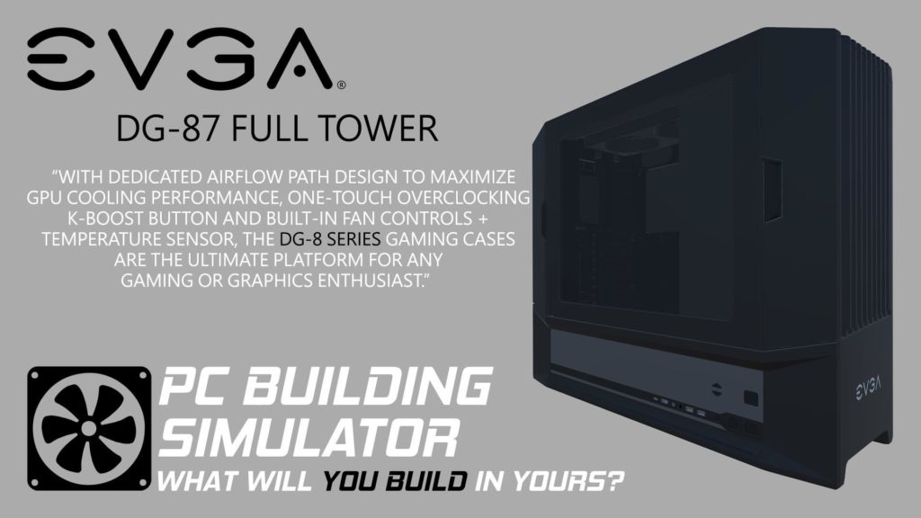 Der PC Building Simulator von The Irregular Corporation, hat nun endlich die offizielle Unterstützung vom Hersteller EVGA. EVGA schließt sich Cooler Master, Raijintek und NZXT als Projektpartner an. Das bedeutet, dass offizielle EVGA-Produkte im erscheinen werden. Dazu gehört nicht nur die neueste GeForce 10 Grafikkartenfamilie, sondern auch deren Gehäuse und Netzteile. Mit der SuperNOVA Netzgeräteserie können Anwender auch innerhalb von Gehäusen der DG-8- und DG-7-Serie präzise bauen.