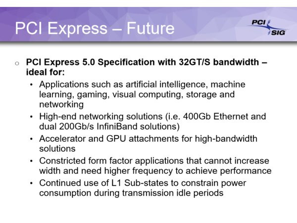 PCI-SIG: PCIe 4.0 in 2017, PCIe 5.0 in 2019