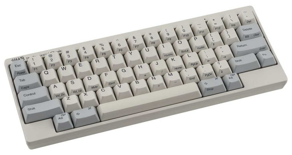 HHKB Classic ist in Weiß oder Anthrazit, mit bedruckten oder unbedruckten Tastenkappen erhältlich und verfügt über Topre Key Switches und USB-C-Anschluss.