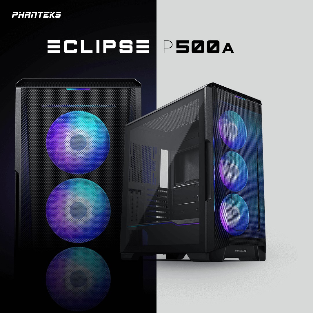 Berlin, 08.07.2020 – PHANTEKS präsentiert mit dem Eclipse P500A sowie dem Eclipse P500A D-RGB neue Midi-Tower mit zahlreichen Funktionen, anpassbarem Innenraum und ansprechendem Design. Ultra-Fine Performance Mesh und zahlreiche wabenförmige Lüftungsöffnungen sorgen für einen hohen Luftdurchsatz. Das PHANTEKS Eclipse P500A ist für Custom- und Komplett-Wasserkühlungen vorbereitet und kann bis zu sieben Lüfter aufnehmen. Passend dazu stellt PHANTEKS die neue SK-Lüfterserie vor. Die PWM-gesteuerten Lüfter im 120- und 140-mm-Format in klassischem Schwarz gibt es in Varianten ohne LEDs sowie mit digital adressierbarer RGB-Beleuchtung.