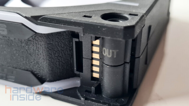 Wie unschwer zu erkennen ist, besitzt jeder der Lüfter seitlich am Rahmen Kontaktstellen sowie an den äußersten Innenkanten Möglichkeiten zum gegenseitigen verbinden. Bei herkömmlichen Lüftern wird via Steckerverbindungen jeder verbaute Lüfter miteinander verbunden, bei dem D30-120 Lüftern erfolgt diese über ein eine Daisy-Chain-Kabel. Dieses Kabel wird lediglich mit dem Signal-Input Kabel verbunden und die beiden anderen Lüfter via Brücke verbunden. Wir finden, diese Daisy-Chain-Lösung ist eine gelungene Verbesserung gegenüber anderen mit Steckverbindungen.