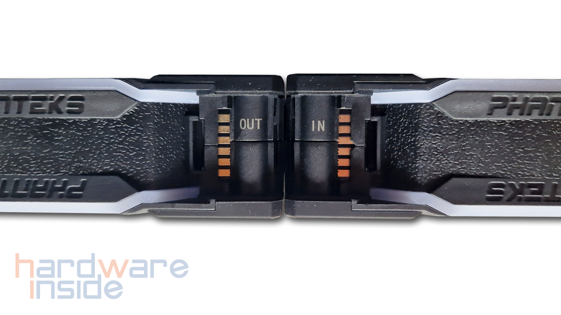 Direkt vom Pumpengehäuse gehen zwei Kabel ab, ein 3-Pin Stecker zur Regulierung der Lüfterdrehzahl und ein JST PHANTEKS D-RGB Kabel zur Ansteuerung der RGB-Farbsteuerung.