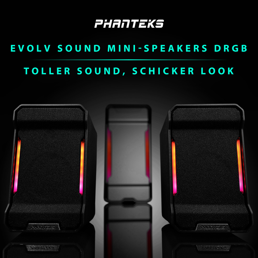 Die Phanteks Evolv Sound Mini Lautsprecher DRGB passen perfekt zu den preisgekrönten Evolv X Gehäusen. Die integrierte Beleuchtung harmoniert mit den von Phanteks bekannten Digital-RGB-Farbmustern, während die 6 Watt Audiotreiber in einem kompakten Formfaktor überzeugen. Das kleine und platzsparende Design ist ideal für Gaming und Musikgenuss.