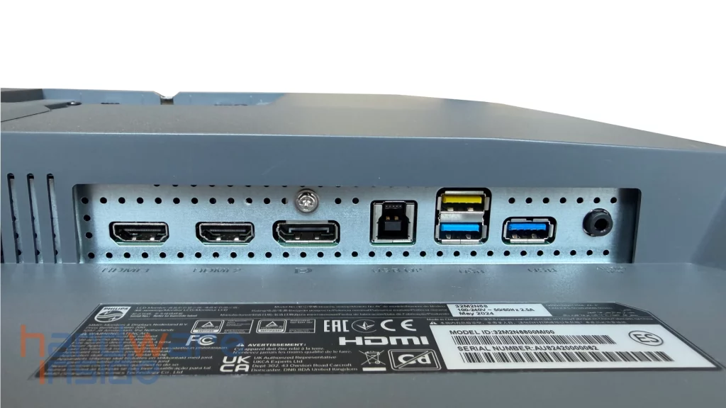 Die Anschlussausstattung des Philips Evnia 32M2N6800M/00 ist zweckmäßig, jedoch nicht vollständig auf dem neuesten Stand. Für die Bildübertragung stehen DisplayPort- sowie HDMI-Anschlüsse zur Verfügung, wodurch sich der Monitor problemlos mit aktuellen Gaming-PCs, Konsolen oder Notebooks verbinden lässt. Hohe Auflösungen und Bildwiederholraten werden zuverlässig unterstützt.