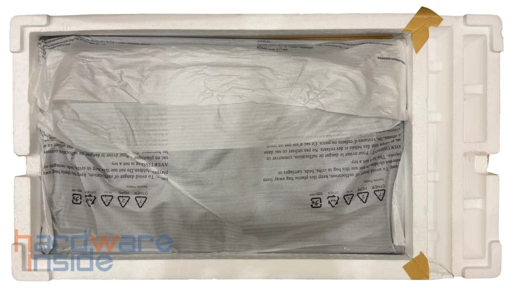 Der Philips Evnia 32M2N6800M/00 wird in einer stabilen und ordentlich verarbeiteten Verpackung geliefert, die den Monitor während des Transports zuverlässig schützt. Im Inneren ist das Gerät sicher in Styropor-Formteilen fixiert, sodass Beschädigungen auf dem Versandweg weitgehend vermieden werden. Auf der Außenseite der Verpackung sind bereits die wichtigsten technischen Merkmale und Funktionen abgebildet, wodurch man schon vor dem Auspacken einen guten Überblick über die Ausrichtung des Monitors erhält.