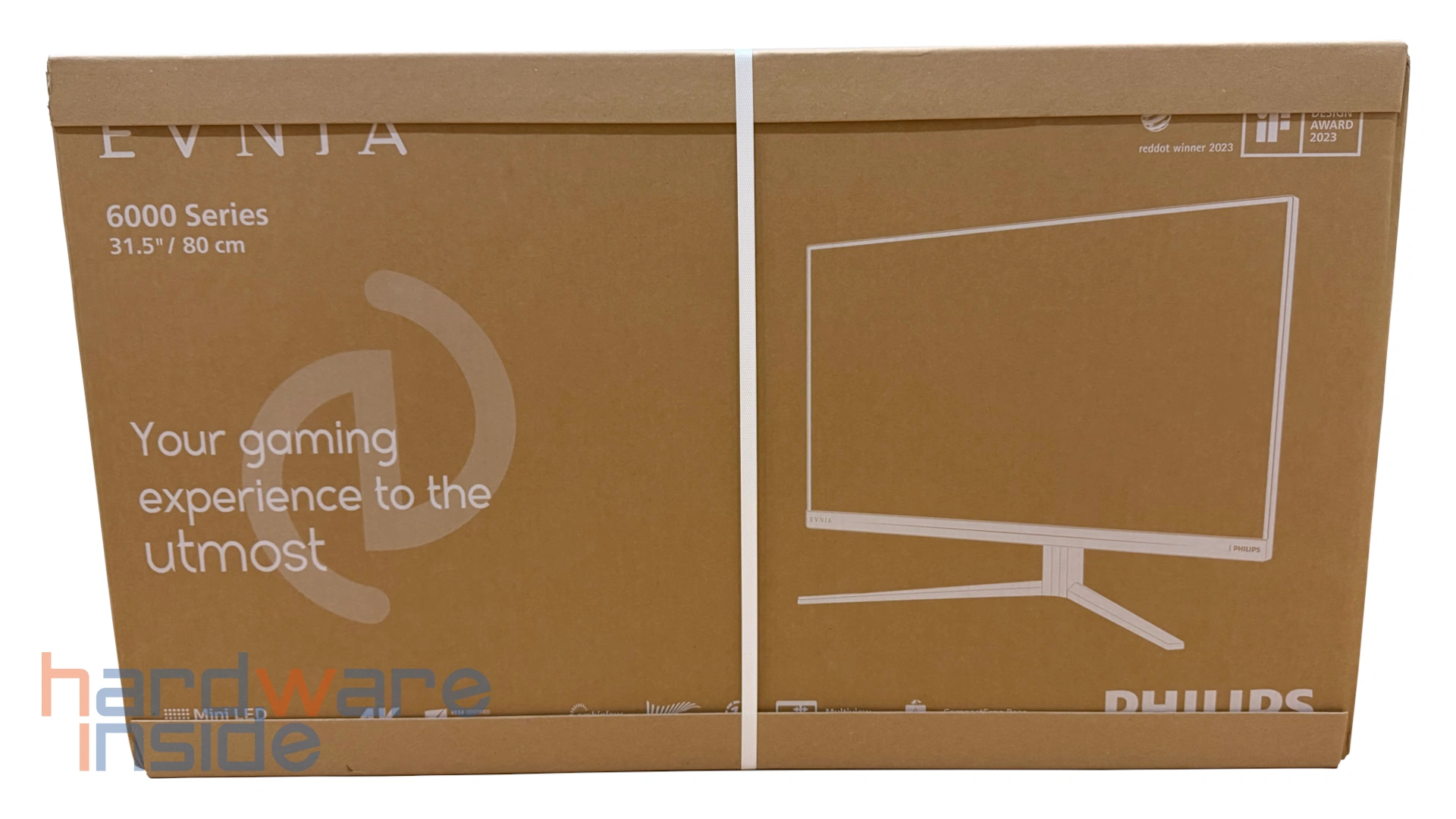 Philips hebt dabei unter anderem die hohe Auflösung, die Gaming-Features sowie die moderne Panel-Technologie hervor. Insgesamt vermittelt die Verpackung einen wertigen und stabilen Eindruck und macht deutlich, dass sich der Evnia 32M2N6800M/00 an Nutzer richtet, die Wert auf Leistung und Bildqualität legen.