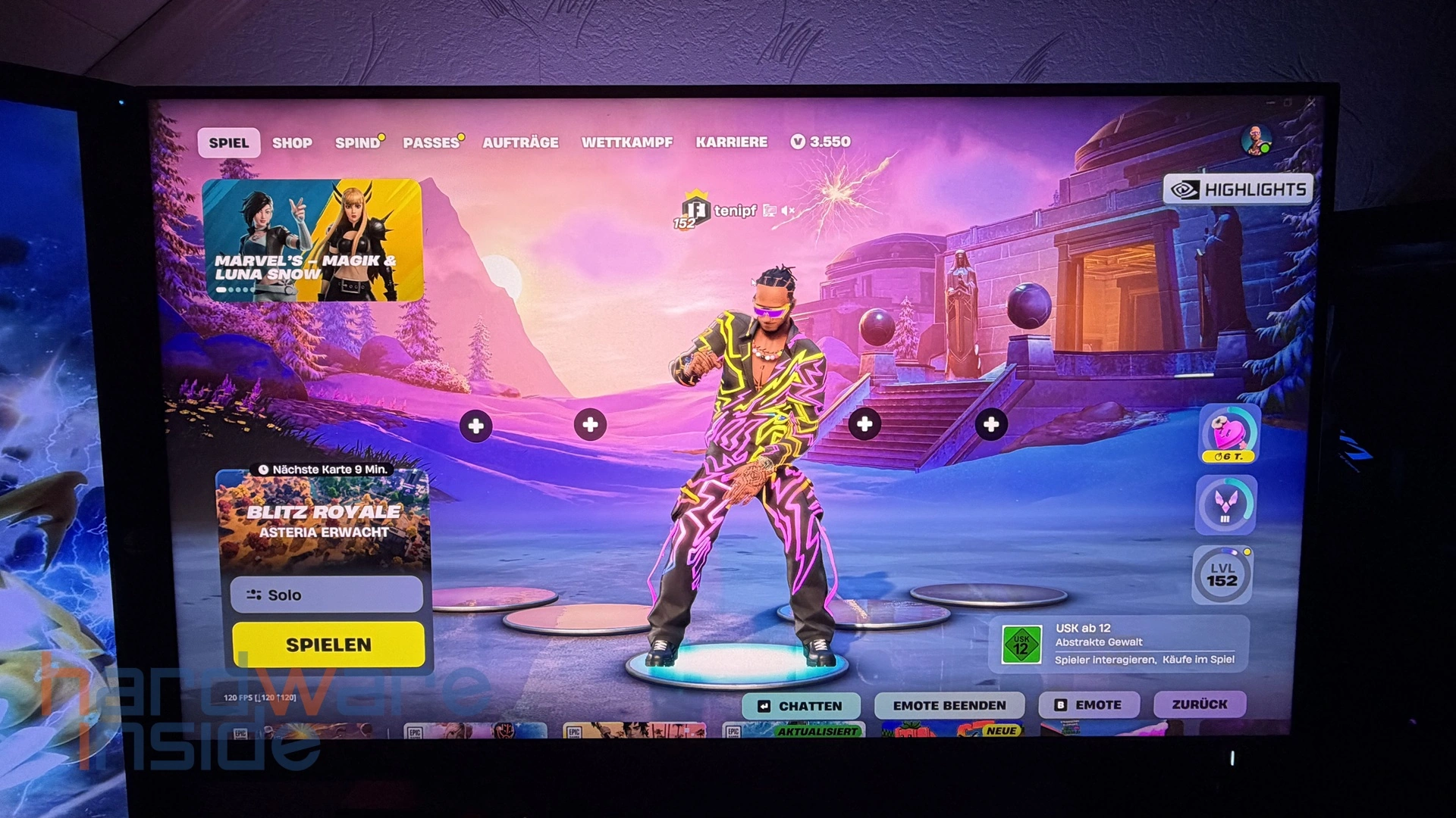 In grafisch intensiven Spielen spielt der Monitor seine Stärken besonders aus. Die hohe Auflösung sorgt für ein sehr scharfes Bild, während die starke HDR-Helligkeit und der verbesserte Kontrast durch das Local Dimming Szenen deutlich lebendiger wirken lassen. Lichtquellen, Reflexionen und Explosionen kommen sichtbar besser zur Geltung als auf klassischen Standard-Displays. Auch farbenfrohe Spiele profitieren von der intensiven, aber dennoch ausgewogenen Farbdarstellung. Vorder- und Hintergrund lassen sich gut voneinander unterscheiden, was die Übersicht in dynamischen Spielsituationen verbessert.