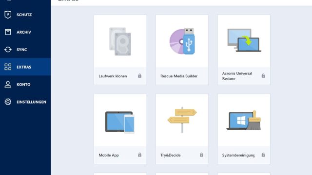 Wird die PNY RP60 PORTABLE SSD online mit dem Code in der Verpackung registriert, steht dem Verbraucher noch eine nützliche Software zur Verfügung. Mit Acronis True Image OEM können Backups verwaltet, der Datenträger aktiv vor unbekannten Verschlüsselungsprozessen und Mining geschützt, Daten archiviert, sortiert und in die Cloud verschoben, Daten synchronisiert und einige Extras freigeschaltet werden. Hier stehen beispielsweise Systembereinigung, Mobile App, Klonen von Laufwerken und weitere hilfreiche Tools zur Verfügung.
