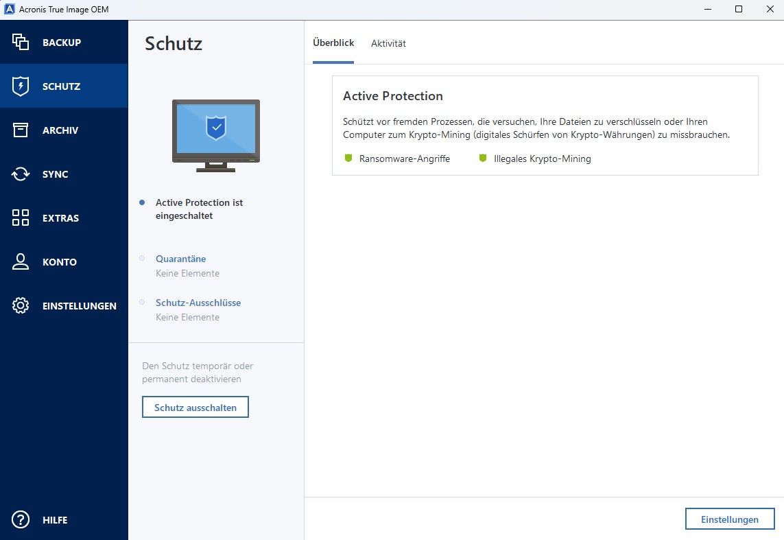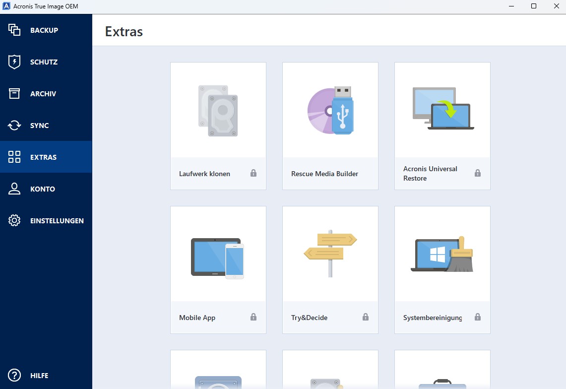 Wird die PNY RP60 PORTABLE SSD online mit dem Code in der Verpackung registriert, steht dem Verbraucher noch eine nützliche Software zur Verfügung. Mit Acronis True Image OEM können Backups verwaltet, der Datenträger aktiv vor unbekannten Verschlüsselungsprozessen und Mining geschützt, Daten archiviert, sortiert und in die Cloud verschoben, Daten synchronisiert und einige Extras freigeschaltet werden. Hier stehen beispielsweise Systembereinigung, Mobile App, Klonen von Laufwerken und weitere hilfreiche Tools zur Verfügung.