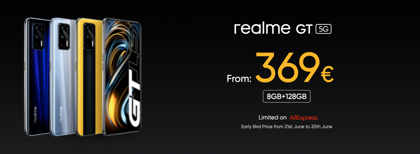 | AliExpress | realme GT (8+128GB) | 449 € 369 € (21.- 25. Juni) |