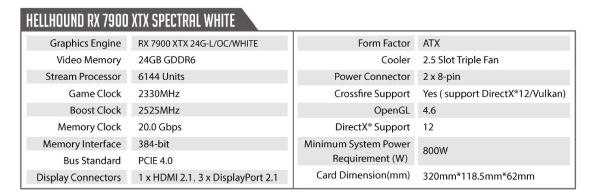 Quelle: PowerColor Announces Hellhound Radeon RX 7900 XTX Spectral White | TechPowerUp